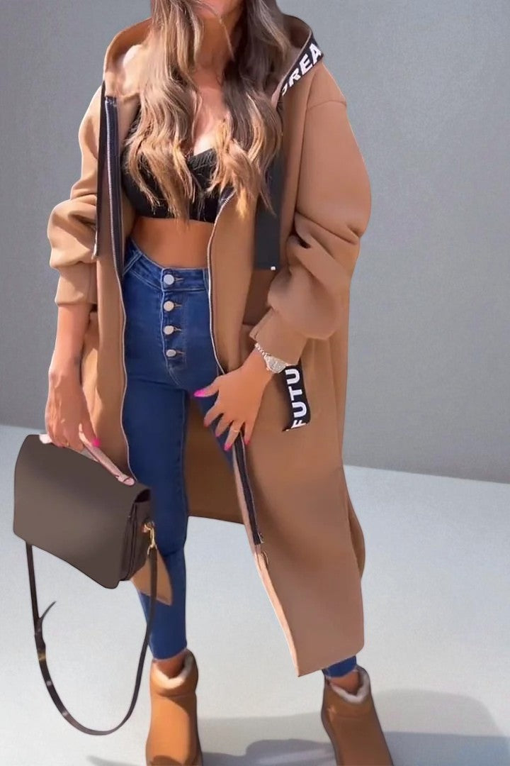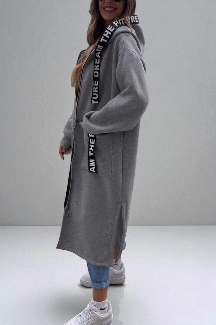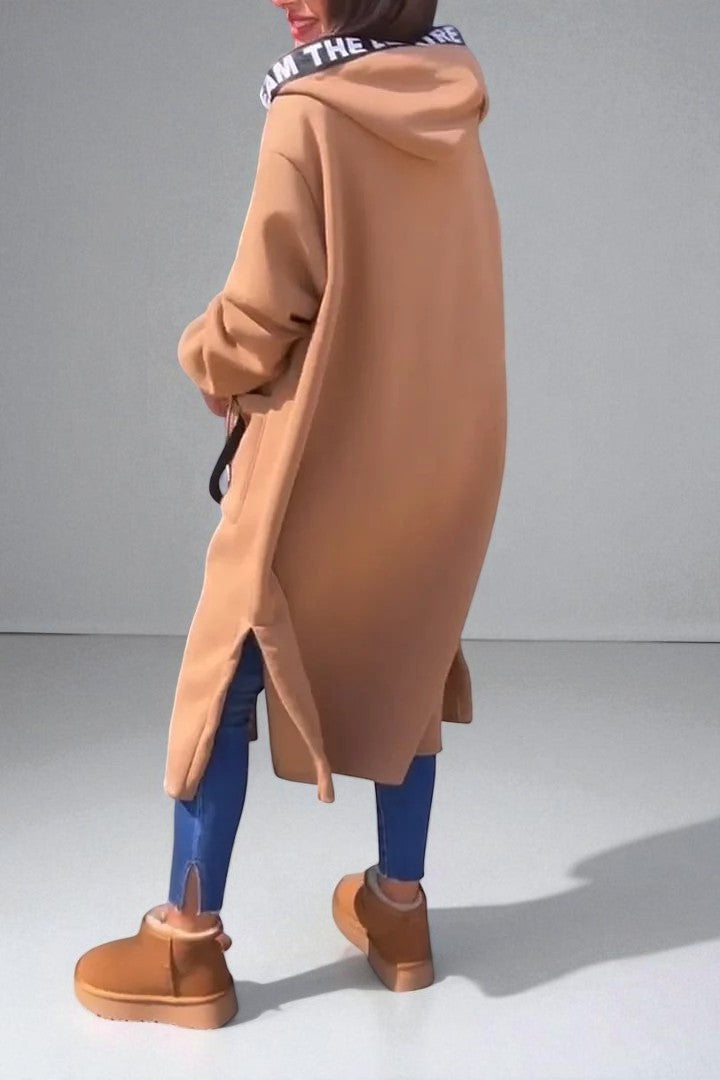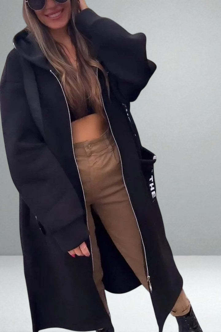 The Mila Hooded Long Coat takes the ease of a hoodie and reimagines it with an elongated, refined silhouette. Falling gracefully below the knee, it gives you that perfect balance of laid-back coziness and street-ready elegance — ideal for layering on crisp mornings or wearing open on cool afternoons.