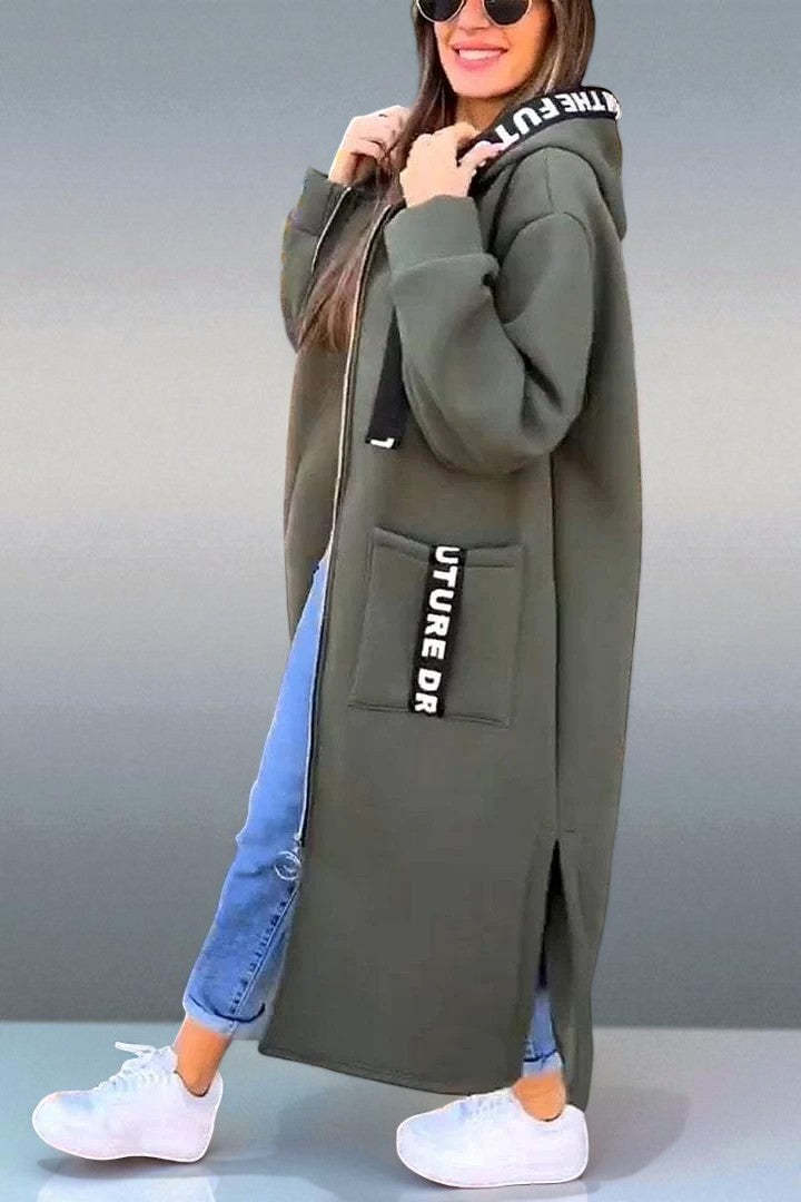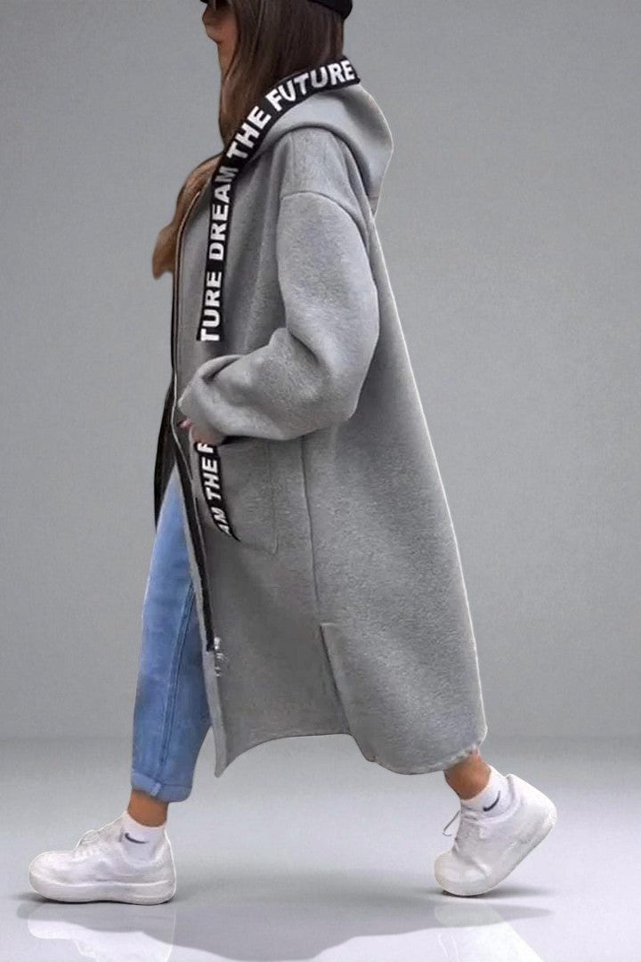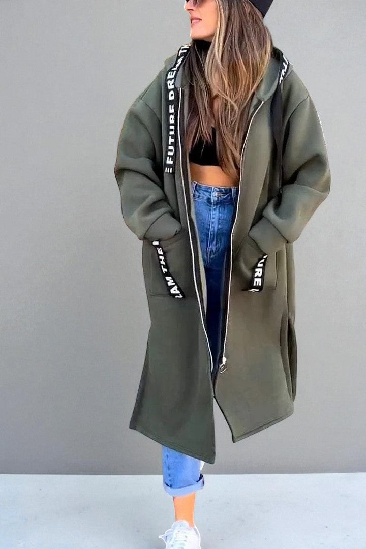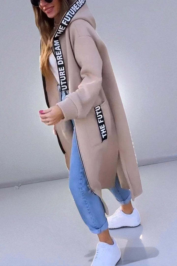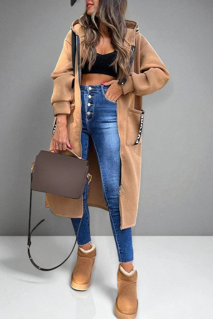 The Mila Hooded Long Coat takes the ease of a hoodie and reimagines it with an elongated, refined silhouette. Falling gracefully below the knee, it gives you that perfect balance of laid-back coziness and street-ready elegance — ideal for layering on crisp mornings or wearing open on cool afternoons.
