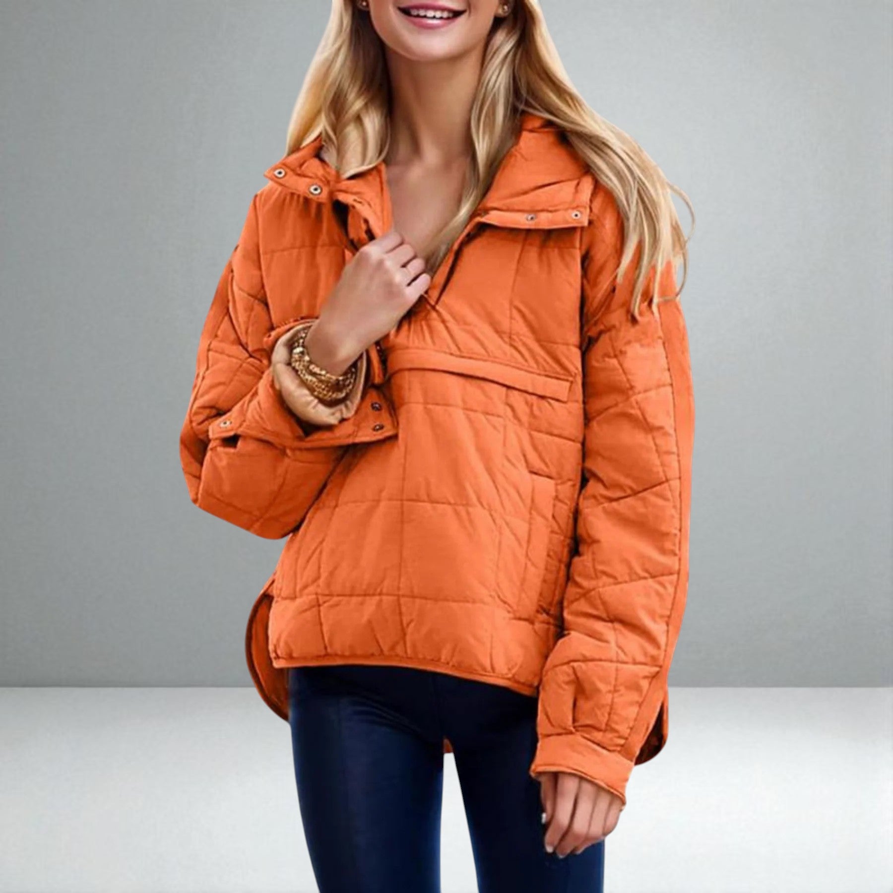 The Valeria Hooded Puffer Jacket wraps you in warmth while keeping your look sharp and effortless. With its oversized fit and laid-back silhouette, it’s the jacket you’ll reach for when the air turns crisp, the leaves turn golden, and style must meet comfort without question.