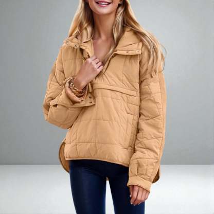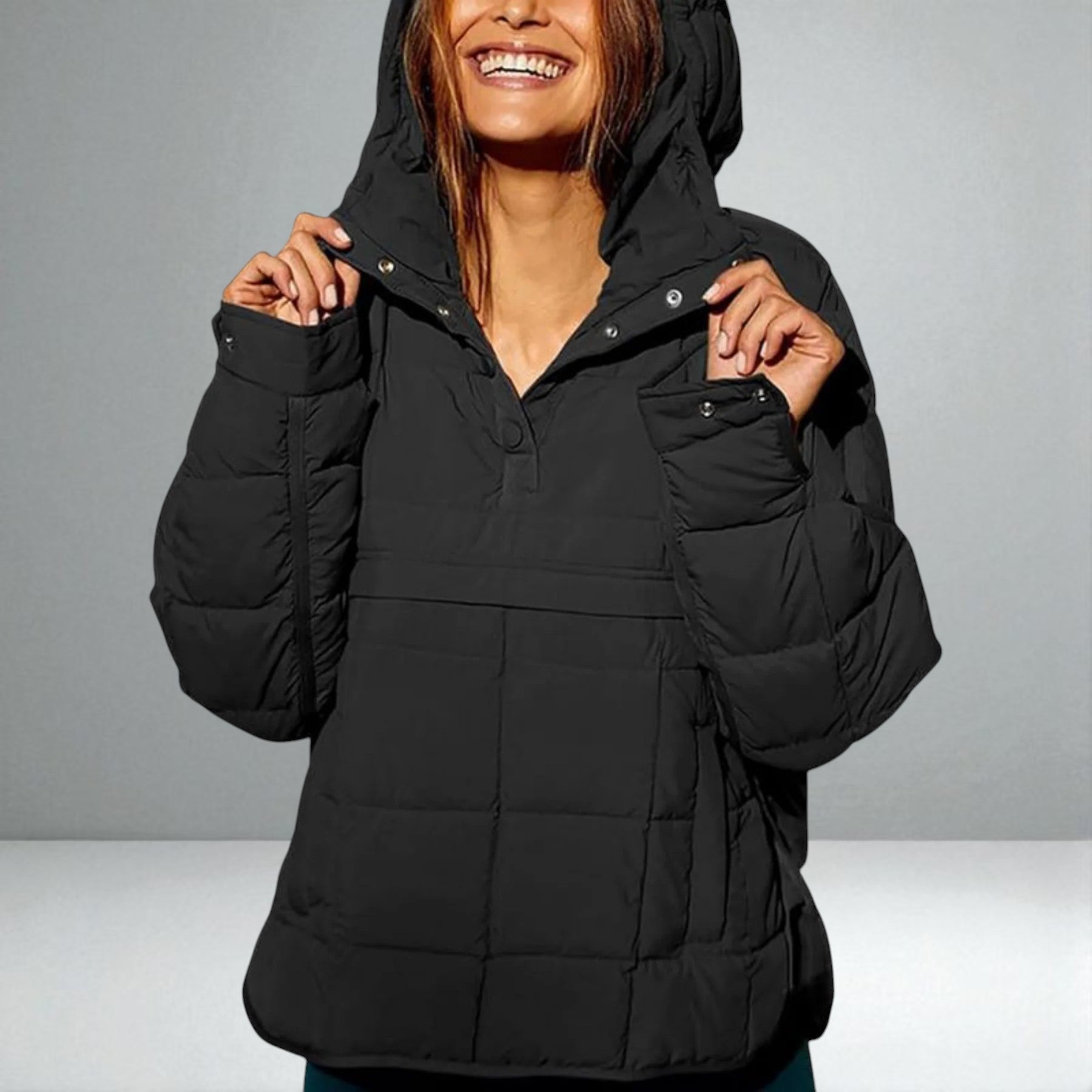 This fall, let The Valeria Hooded Puffer Jacket be your statement of effortless warmth and modern grace.