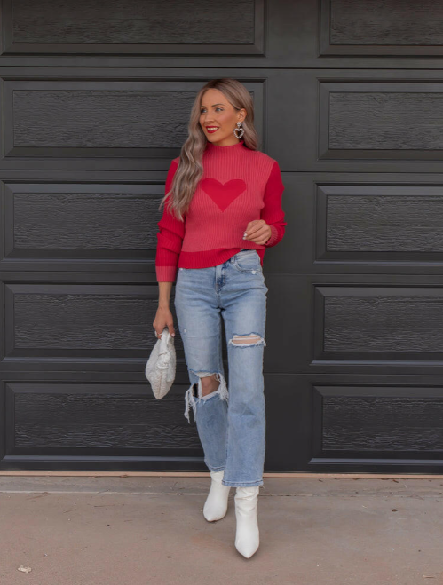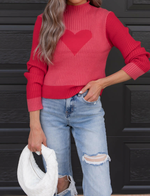 Add a pop of color to your winter wardrobe with our irresistible luxury heart print sweater—a perfect blend of cuteness and luxury.