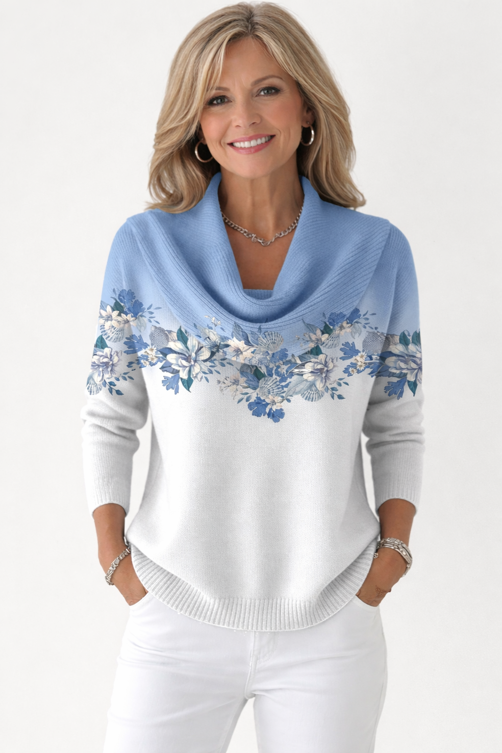 The delicate floral pattern gives this sweater a timeless charm that you'll love.