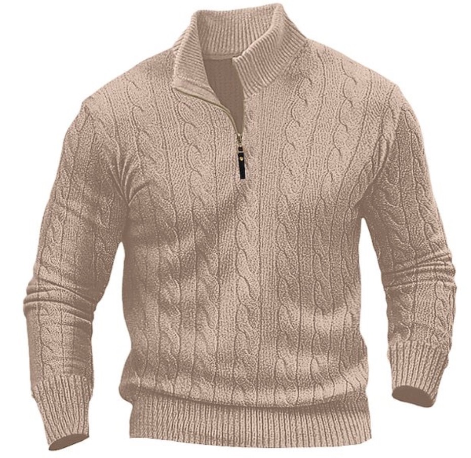 Men's long-sleeved cable knit sweater