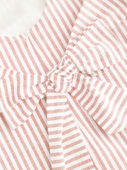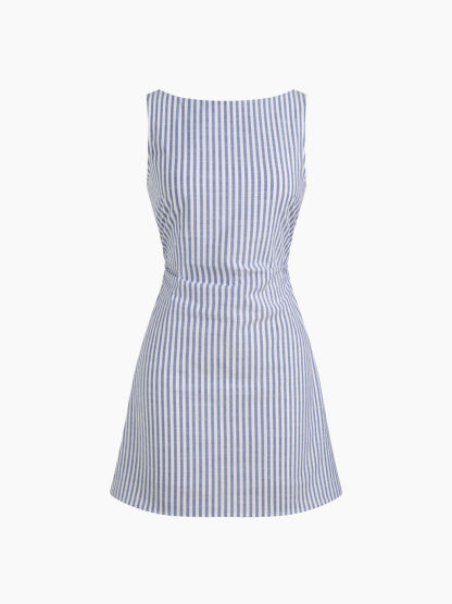 Cotton-blend Boat Neck Stripe Bowknot Backless Mini Dress