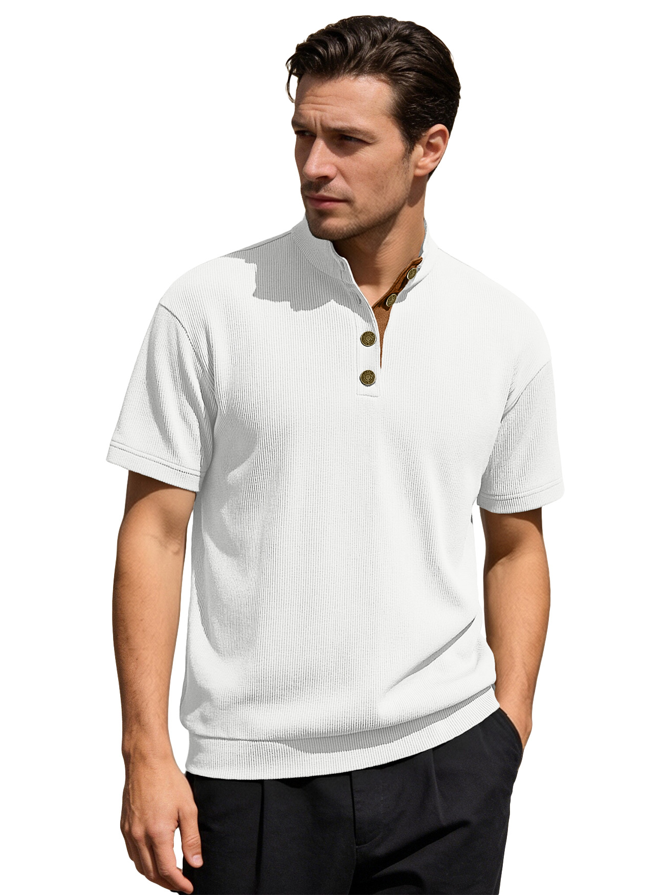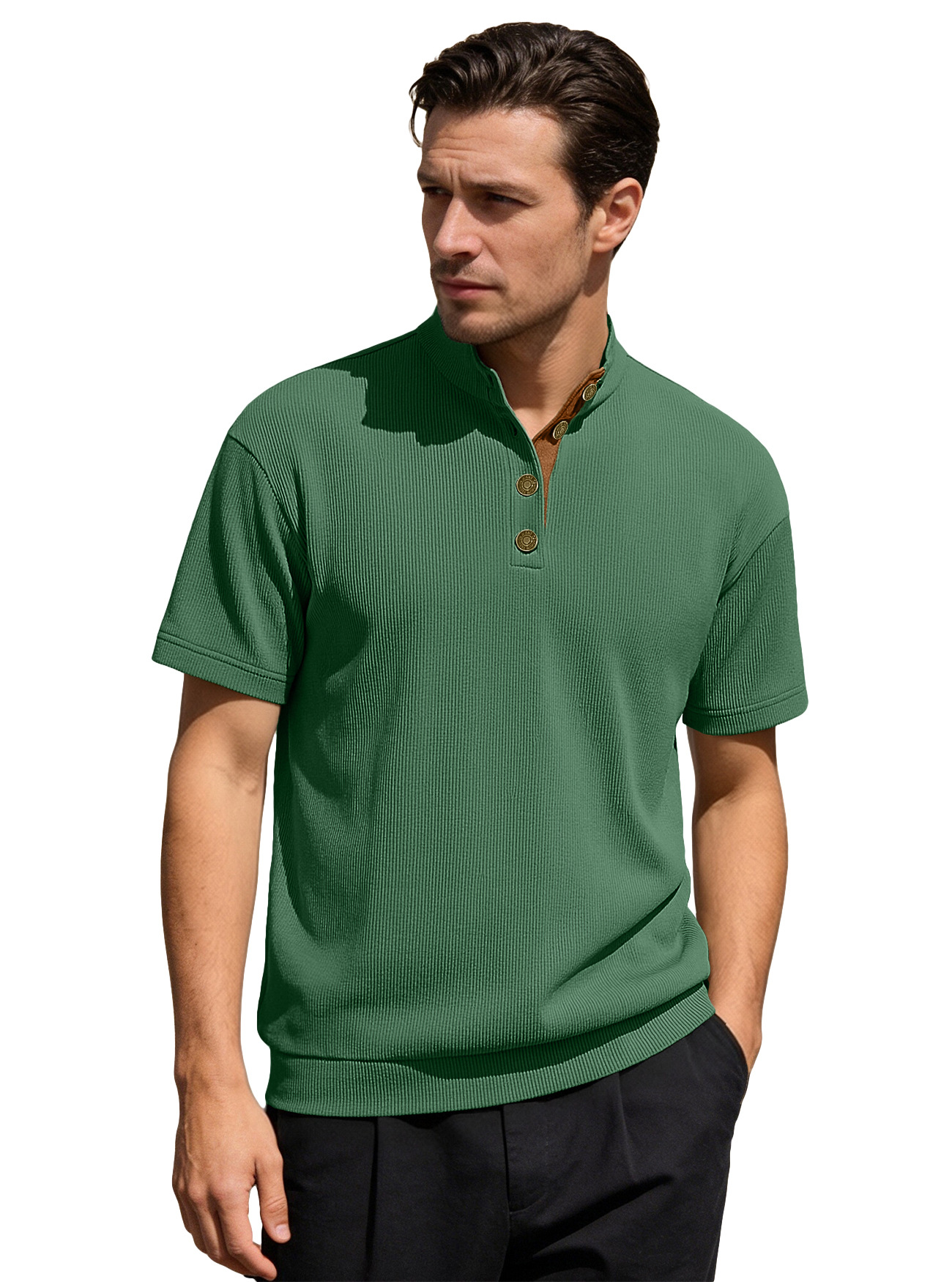 Men's Outdoor Casual Stand-Collar Short-Sleeve Corduroy Knit Pullover T-Shirt