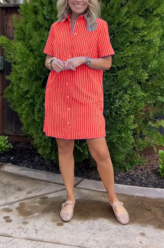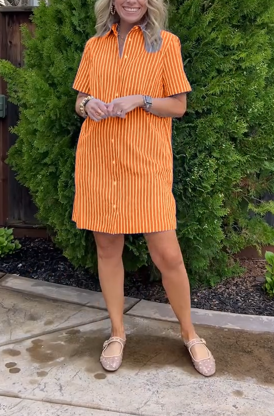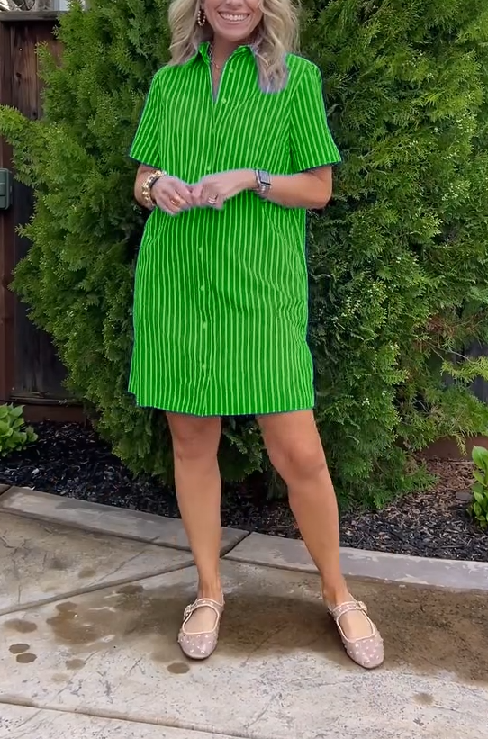 Timeless Elegance: casual striped short-sleeved shirt dress