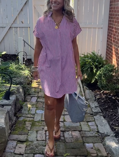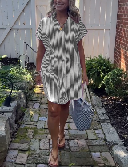 NEW🔥Women's Striped Short Sleeve Shirt Dress