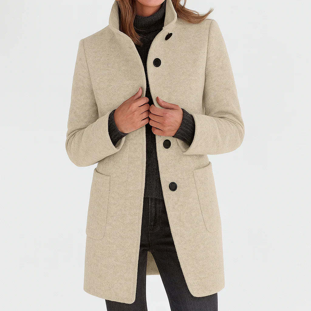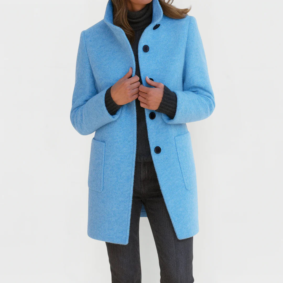 The Victoria wraps you in a soft wool-blend warmth that makes cold days feel calmer, not harsher. Its straight, refined silhouette drapes with quiet precision, creating a look that feels intentional without ever trying too hard. The high collar shields you from the wind, while the clean structure and smooth finish bring an elegance that elevates any outfit, from everyday denim to an evening dress.