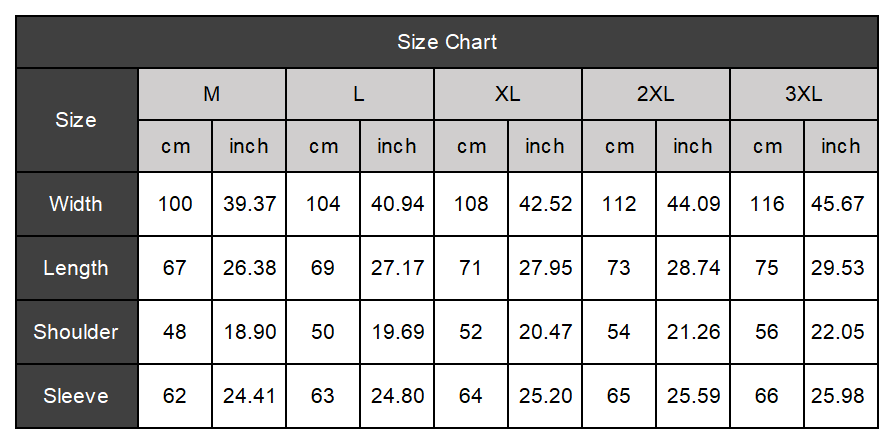 Size: M, L, XL, 2XL, 3XL