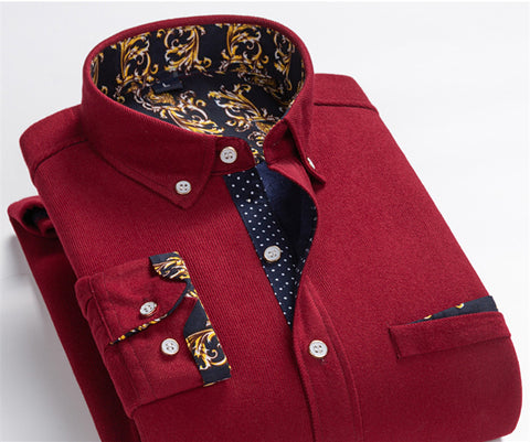 Men's High Quality Corduroy Warm Winter Shirt Thick Fleece