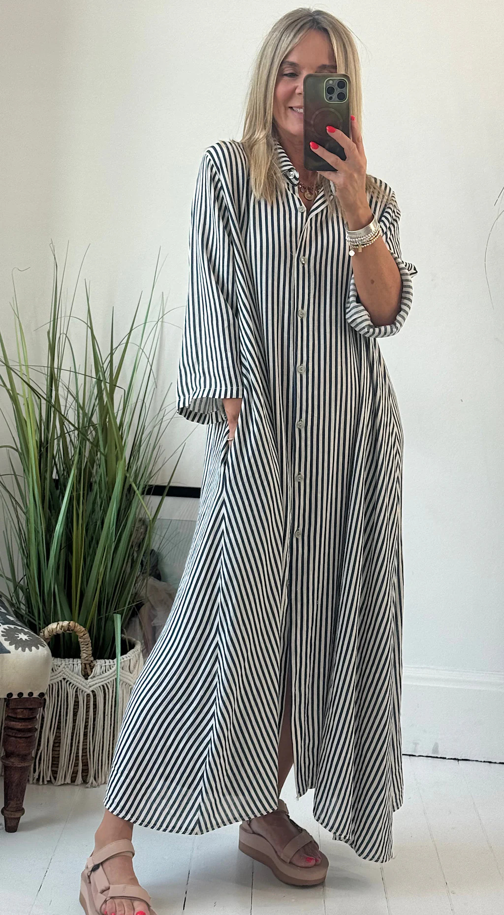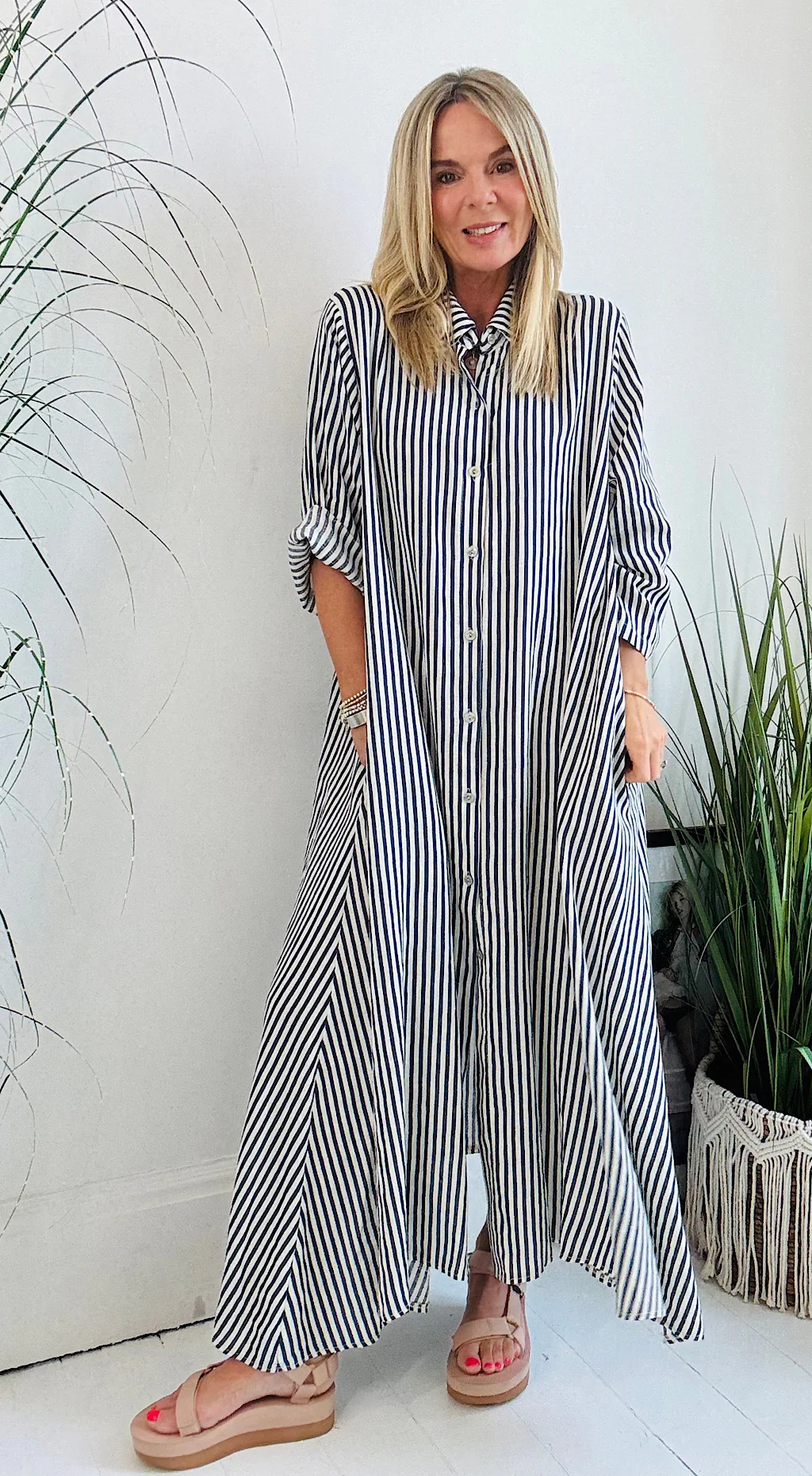 Women's🔥New Arrivals Linen Striped Shirt Dress
