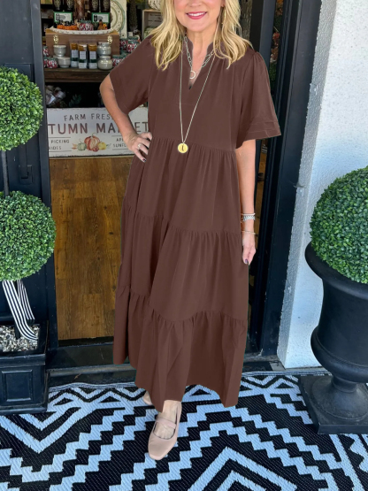 Women's New Arrivals Summer V-Neck Tiered Midi Dress with Pockets