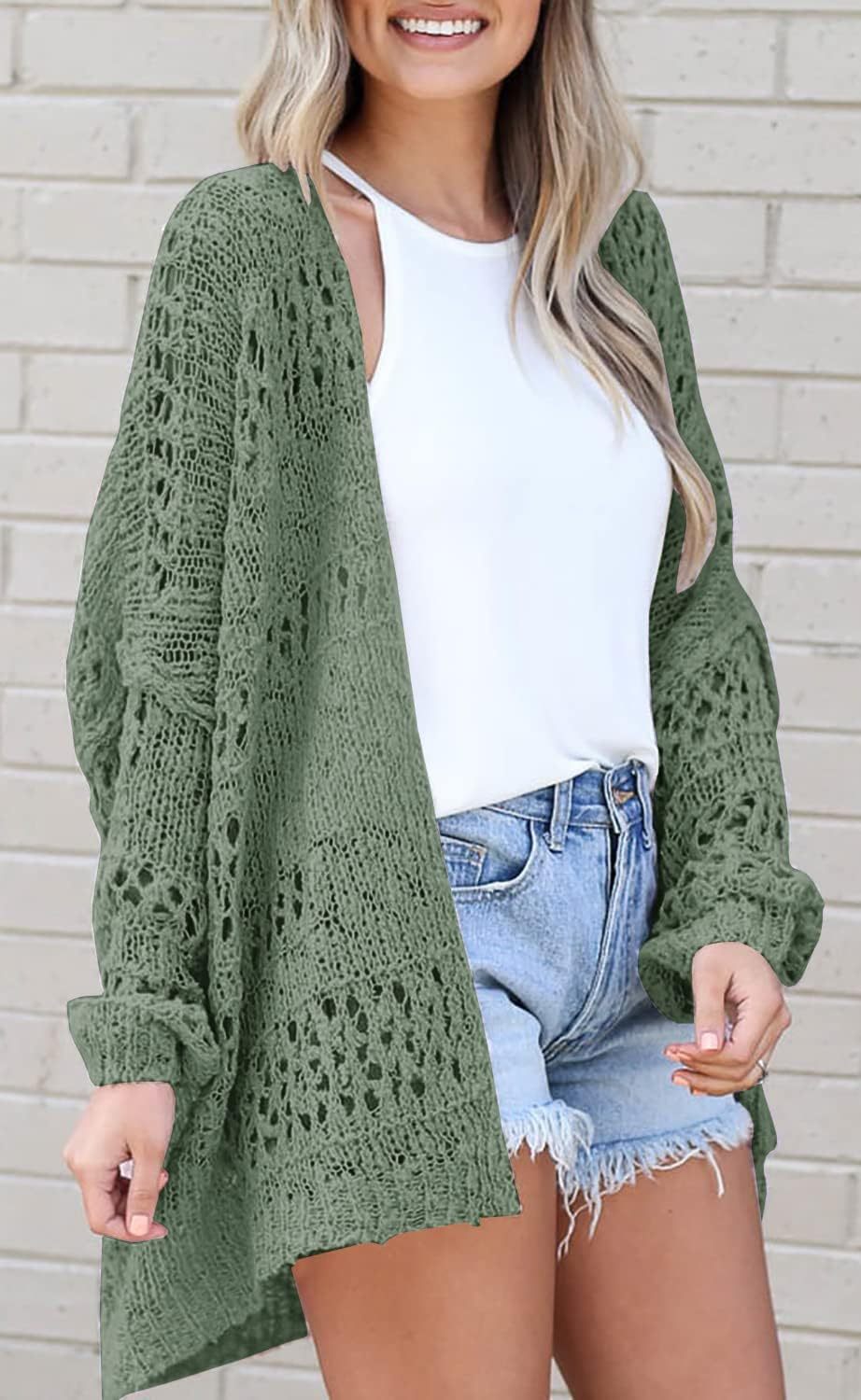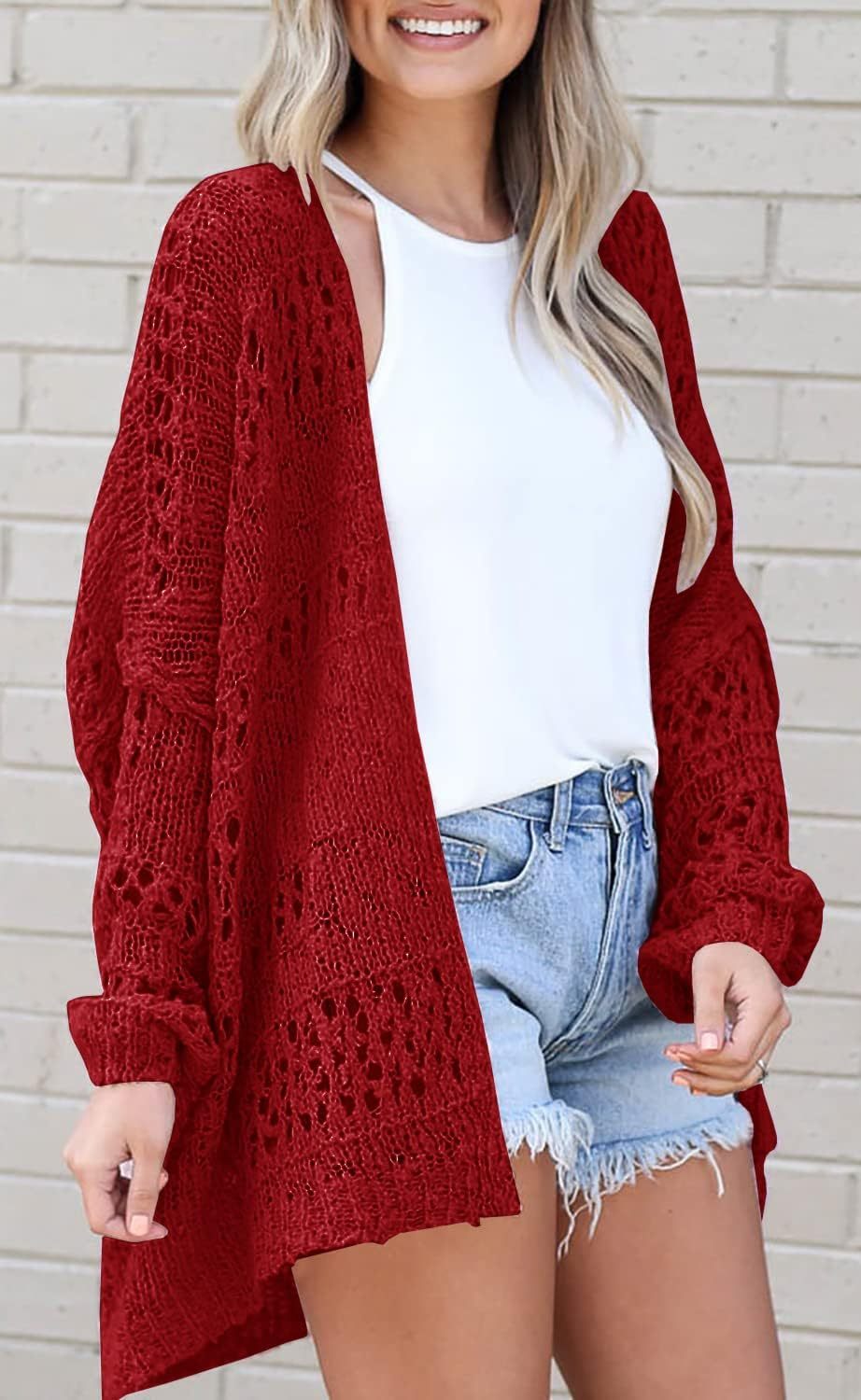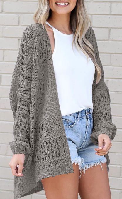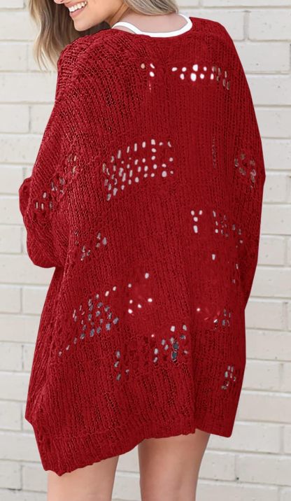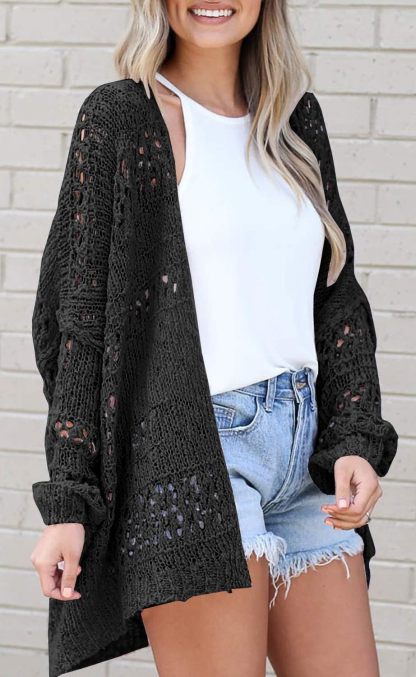 Women's Crochet Cardigan Sweater Solid Color Cardigan Jacket