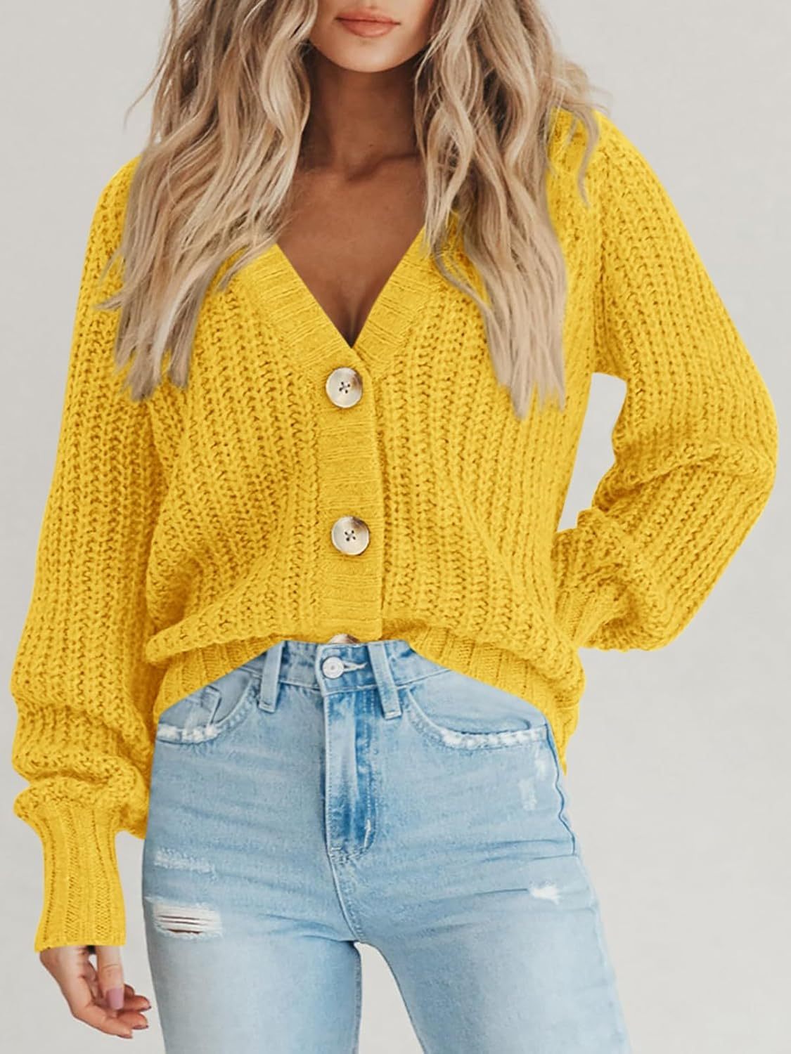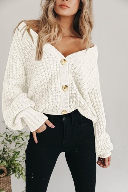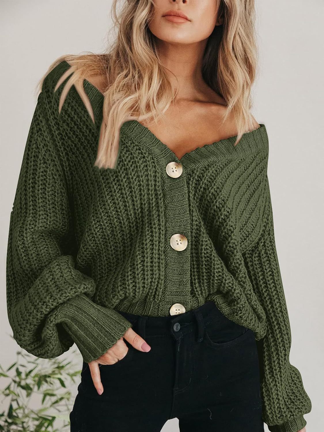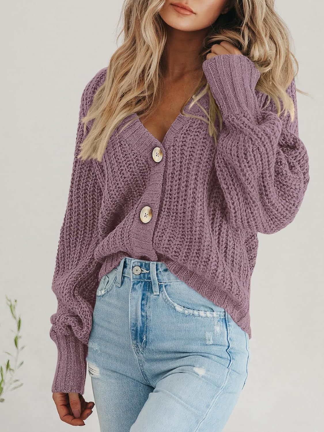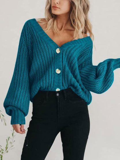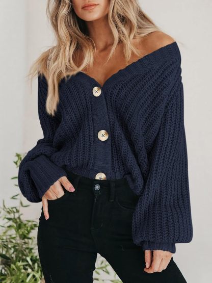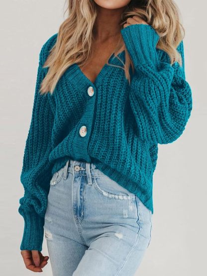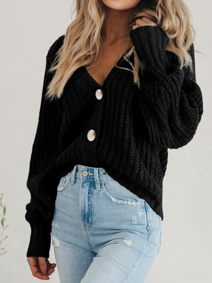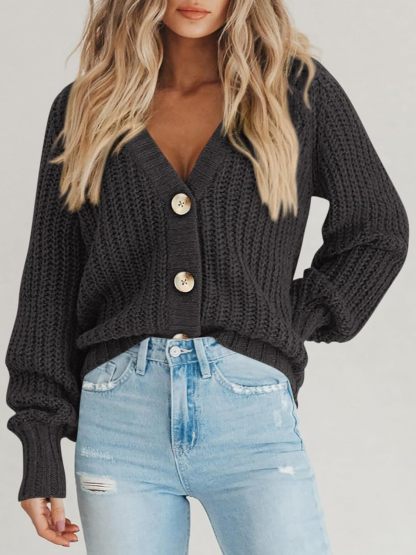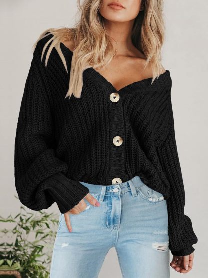 Women's Chunky Knit Cardigan Sweater Long Sleeve Button Loose Cardigan Jacket