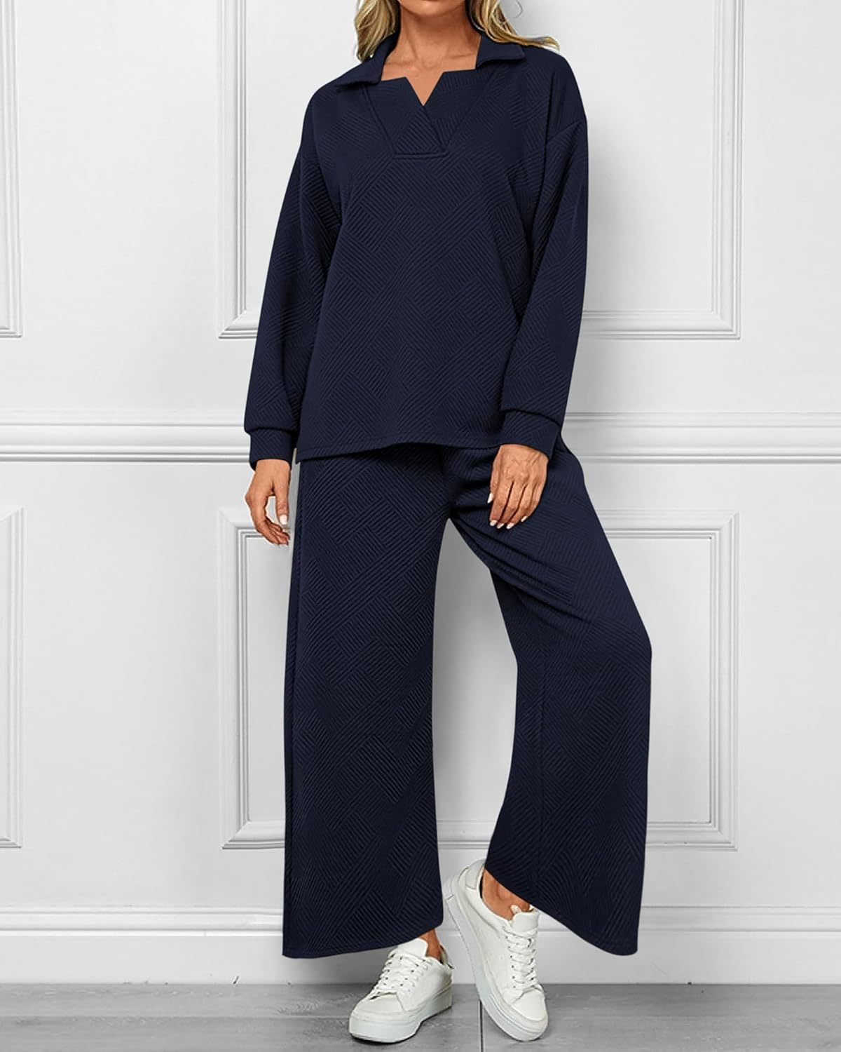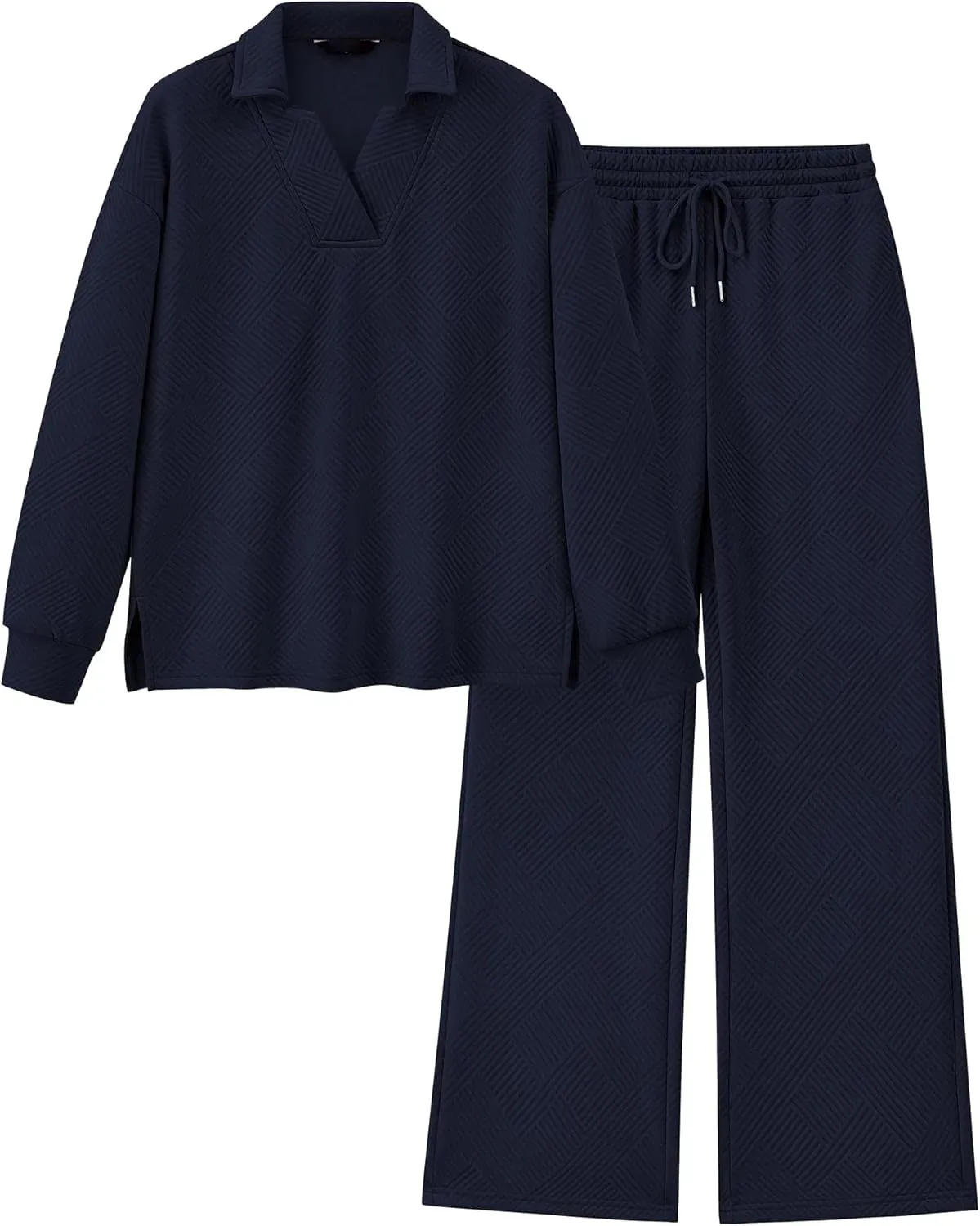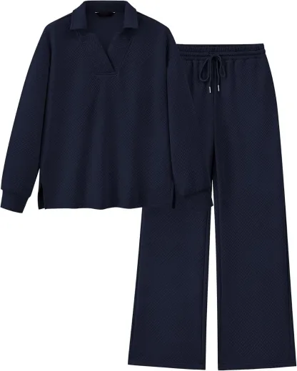 Women's Lapel V Neck Textured Lounge Sets (Buy 2 Free Shipping)